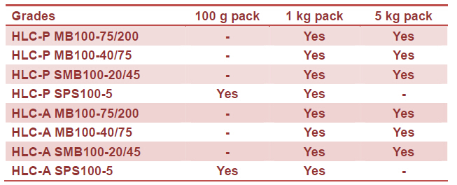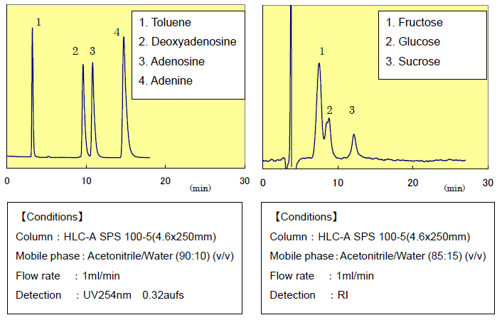????因此,對于極性化合物的洗脫,HILIC模式和反相模式是互補的。富士硅化學有限公司開發了兩款HILIC模式的填料,命名為“HLC”硅膠。兩種HLC硅膠都含有兩性的官能團,共價鍵合在硅膠表面?!?/span>HLC-A”用于分離純化有機酸、核酸和糖類;“HLC-P”用于分離氨基酸、多肽。