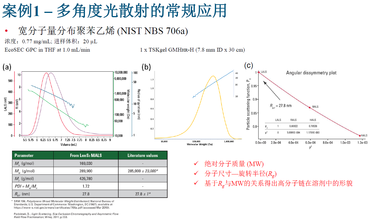 ? ? ? ?光散射是測量聚合物、蛋白質(zhì)、多肽化合物以及其他多種復(fù)雜結(jié)構(gòu)大分子的絕對分子量以及尺寸的最常用表征手段。通過與HPLC或者GPC聯(lián)用,光散射可作為表征和探索大分子的結(jié)構(gòu)、構(gòu)型和組成的利器 !
