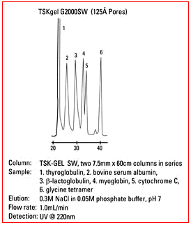SW型柱以高多孔性硅膠顆粒為基礎,其表面因受二醇功能基配體的衍生作用保護而不與蛋白質相互作用。TSKgel SW型柱憑借其大孔隙容積而勝過其它硅膠基質或聚合物高性能尺寸排阻柱。