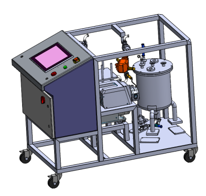 ? ?QuikSep AF中試型全自動超濾系統是采用衛生級隔膜泵或作為循環輸液單元,在泵后、膜包濾過端和回流端分別配壓力傳感器,配合回流端的氣動比例調節閥實現恒定跨膜壓TMP,根據客戶工藝需要可選配在線流量計、UV、電導、pH,集成不銹鋼衛生補液罐,罐體帶稱重、攪拌、噴淋頭在位清洗,配合蠕動泵可現實自動補液功能。
