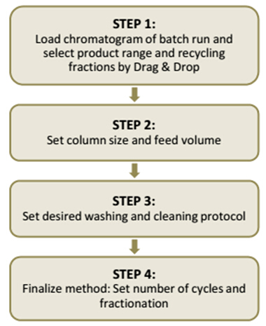 MCSGP向?qū)к浖勺詣?dòng)計(jì)算回收階段的在線稀參數(shù),并可顯示所需進(jìn)料的總體積、溶劑和運(yùn)行時(shí)間等。
