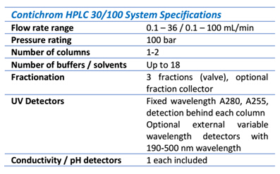 EcoPrime Twin HPLC :EcoPrime Twin HPLC為生產(chǎn)型連續(xù)流層析系統(tǒng),可在GMP條件下運(yùn)行MCSGP功能,滿足MCSGP工藝的有效線性放大。
